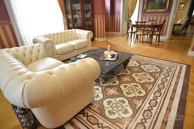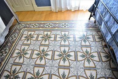 Il grande ingresso che ci accoglie con una bella boiserie, elemento decorativo dal forte impatto scenico, che nasconde agli sguardi la funzionale cappottiera, mostra da subito le note di classe e di stile di tutto l'appartamento. I pavimenti originali, di cementine policromatiche dai pregiati disegni, sono incorniciati dai toni caldi del parquet. Il salone doppio angolare è un ambiente elegante, con le volte alte fino mt. 5,00 ca. valorizzate dalle cornici e dal gioco di colori; due balconi, uno su via Cairoli e l'altro su Via Abate Gimma ed una particolare finestra circolare, donano luce al salone. Due porte gemelle, dagli eleganti profili lignei, esaltano la simmetria degli ambienti e collegano il salone al soggiorno pranzo, un altro ambiente ampio e luminoso, affacciato con un altro balcone su Via Abate Gimma. Una porta lignea scorrevole, si apre nella cucina spaziosa, arredata su quattro lati, con un bel pavimento in cementine e resina, affacciata sul balcone interno, su cui è posta la funzionale lavanderia.