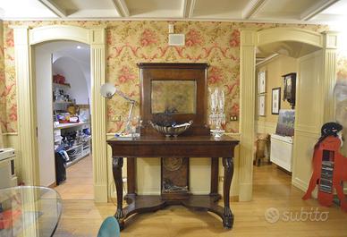 Affascinante appartamento, centralissimo, in un bel palazzo del 1939, con ascensore, posto in Via Calefati all'altezza di Via Roberto da Bari, a due isolati da Via Sparano,. L'appartamento ha l'innegabile fascino di una casa ristrutturata rispettando la struttura dell'epoca; il taglio è signorile; lo spazio, di mq. 180 ca. (mq 140 ca. a piano e mq. 40 ca. di soppalco), è un attraente susseguirsi di ambienti con le volte alte fino a mt. 5,50 ca.. Il grande ingresso ci accoglie nell'ampia zona pranzo, con una finestra affacciata su una piccola corte, mostra da subito lo stile di tutto l'appartamento. Il pavimento in parquet fa da filo conduttore di tutta la casa. Il salotto è un ambiente elegante, con le volte alte fino mt. 5,50 ca. valorizzate dalle cornici e dal gioco di colori, con una grande finestra affacciata sul vano scale. Due varchi gemelli, dagli eleganti profili lignei, esaltano la simmetria degli ambienti e collegano il salotto ad un piccolo ambiente (attualmente utilizzato come cabina armadio), e alla cucina affacciata sul cortile interno. Un altro splendido varco ci introduce nella zona notte, composta dalla camera da letto matrimoniale e dalla seconda camera da letto, entrambe con le volte alte, ed entrambe affacciate con due balconi su Via Calefati. Girando il ns. volto verso destra, scorgiamo Via Sparano ed uno scorcio della Camera di Commercio su Corso Cavour . Collegata con una scala in parquet, la zona del soppalco, con 1 camera da letto con finestra verso l'interno, un'altra cameretta ed il ripostiglio. I bagni sono due, oltre una zona lavanderia. La porta è blindata; il riscaldamento è autonomo; gli ambienti sono climatizzati; gli infissi sono in alluminio con doppio vetri e completi di persiane; le porte interne e gli arredi fissi sono di ebanisteria. L'appartamento ha la proprietà di una porzione della terrazza posta al terzo piano. Un appartamento particolarmente interessante e non comune, per il fascino degli ambie