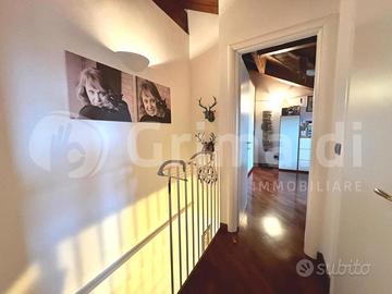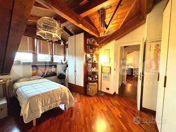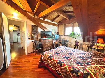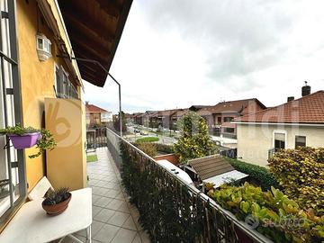 Borgaretto: in zona residenziale e signorile, appartamento in piccolo contesto di sole tre unità abitative, sito al piano 1° ed ultimo, disposto su due livelli, totalmente ristrutturato, composto da ingresso su soggiorno, cucina abitabile, servizio con antibagno, ripostiglio e ampio balcone con tende da sole motorizzate, al piano superiore collegato internamente da una comoda scala, disimpegno, due camere e servizio. Il tetto è completamente rivestito in legno con travi a vista.