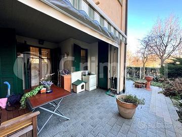 Borgaretto: in zona residenziale nel contesto del Cervo, la Grimaldi di Borgaretto vende in esclusiva, appartamento con giardino privato, composto da soggiorno living con cucina a vista, due camere, servizio e giardino privato; al piano interrato ampio locale ad uso tavernetta, cantina e box. L'appartamento e' dotato di inferriate antifurto e deomificatori ed il riscaldamento e' autonomo.