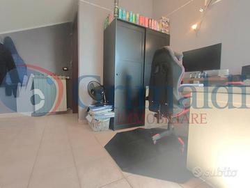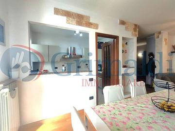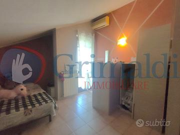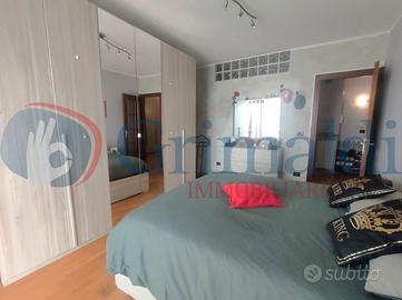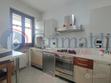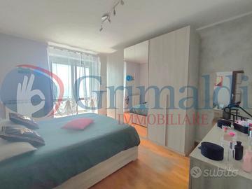 Beinasco - Via Verdi. Al fondo di una via chiusa, frequentata solo dai residenti e circondata dal verde, la Grimaldi Immobiliare di Beinasco propone in vendita in esclusiva, grazioso bilivello. Il contesto di recente costruzione è interamente in paramano e l'appartamento è sito al primo piano. Dal portoncino blindato siamo accolti dall'ingresso, che ospita la scala che conduce al piano superiore. Proseguendo troviamo il soggiorno collegato con la cucina abitale, che grazie alle due finestre, sono molto luminosi. Sempre al piano vi è la camera da letto matrimoniale ed il primo bagno dotato di doccia. Completa il piano un balcone di ampia metratura con vista aperta. Al piano superiore abbiamo un disimpegno che separa tutti gli ambienti, due camere da letto (anch'esse matrimoniali) con uscita sul secondo balcone, lo studio/cabina armadio ed il secondo bagno, finestrato e dotato di vasca.