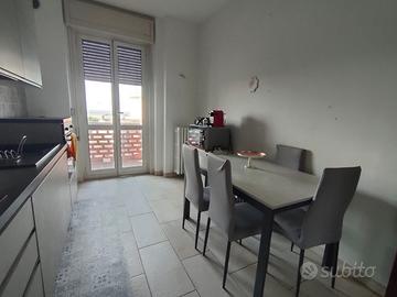 Beinasco - Centro. In posizione centralissima, comodo a tutti i servizi, la Grimaldi immobiliare di Beinasco propone in vendita ampio trilocale parzialmente ristrutturato. L'immobile si trova al sesto ed ultimo piano di un condominio interamente in paramano e con abbattimento delle barriere architettoniche. Dal portoncino di ha accesso al disimpegno, molto spazioso che permette di dividere tutti gli ambienti. La cucina è abitabile, è stata ristrutturata ed ha accesso al primo balcone con vista aperta; il salone, molto grande e luminoso, grazie al taglio squadrato, offre la possibilità di arredarlo facilmente. Proseguendo troviamo la camera matrimoniale, anche questa molto spaziosa e con accesso al secondo balcone. Il bagno è stato ristrutturato completamente ed è dotato di vasca. Completano la proprietà il ripostiglio all'interno dell'appartamento e la cantina al piano interrato. Infissi in alluminio con doppio vetro. Libero.