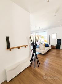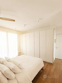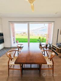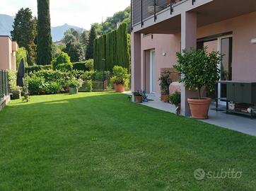 "A pochi minuti dal centro storico di Bellagio, in posizione panoramica, soleggiata con vista sul Lago di Como e le montagne circostanti, proponiamo un esclusivo appartamento signorile di Classe A3, realizzato nel 2023 al piano terra di un fabbricato bifamiliare. Dotato di pompa di calore, impianto fotovoltaico e predisposizione per raffrescamento a basso consumo, garantisce comfort e risparmio energetico tutto l'anno. L'unità, con ingresso indipendente, misura 110 mq interni più 40 mq di portici coperti. Si compone di: ampio salone con zona cucina open space, disimpegno, doppi servizi, due camere da letto e locale centrale termica/lavanderia. Parzialmente arredato con cucina di alto livello e mobili su misura inclusi. Completa la proprietà un'ampia area esclusiva con giardino pianeggiante di più di 200 mq dotato di irrigazione automatica, con vista su lago e montagne. Lo spazio retrostante di 250 mq include cinque posti auto privati, colonnina di ricarica elettrica. Accesso pedonale e carraio diretto da Via Valassina attraverso strada privata chiusa con sbarra che garantisce sicurezza. Soluzione ideale per residenza di prestigio o investimento come casa vacanze, grazie alla location strategica sul Lago di Como."