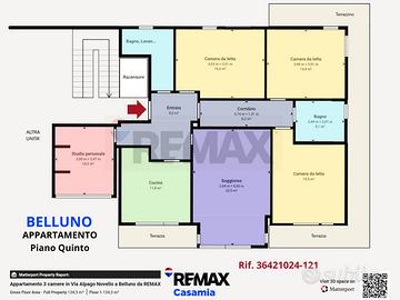 Rif: 34621024-121 Classe energetica: G - EPglnr: 391.60 kWh/m² BELLUNO (Stadio - Via L. Alpago Novello) APPARTAMENTO PANORAMICO ESCLUSIVA RE/MAX Quinto e ultimo piano con vista sulle Dolomiti. Un appartamento ampio, luminoso e flessibile, in una delle zone più tranquille di Belluno, ma vicinissima ai servizi. La casa si sviluppa su circa 150 m² commerciali e offre un ingresso spazioso, cucina abitabile, ampio soggiorno panoramico, tre camere da letto (configurabili anche come 2 camere + studio o sala aggiuntiva), due bagni e due grandi terrazze panoramiche. Non poteva mancare una stanza con caminetto per i momenti di relax e lettura, ricavata da una terrazza a tasca. L'orientamento su tre lati Nord, Sud ed Est garantisce luce naturale e luminosità durante tutto il giorno. Riscaldamento centralizzato con contaore e aria condizionata assicurano il massimo comfort in ogni stagione. Completano la proprietà un garage privato e una cantina per le esigenze di stoccaggio. Il condominio Monte Rosa, costruito nel 1977, è dotato di ascensore: l'accesso all'appartamento è comodo per tutta la famiglia. La vista è panoramica sulle Dolomiti e sulle Prealpi Bellunesi. L'immobile è libero fin da subito. Classe energetica: G Indice 391,60 kWh/m² anno Richiesti 190.000,00 Euro Rif. 34621024-121