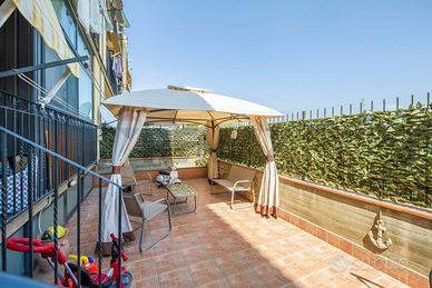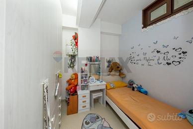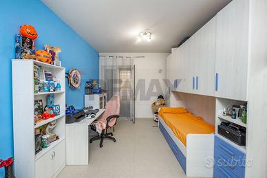A servizio della zona giorno troviamo un bagno con vasca e una comoda lavanderia. La zona notte è composta da una camera matrimoniale con bagno privato e da una cameretta attualmente ricavata adatta come stanza per bambini o studio.