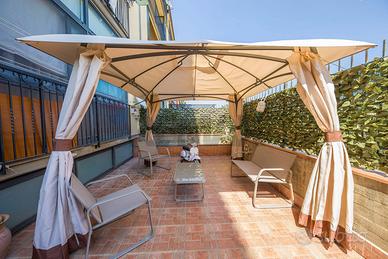 L appartamento posto al piano rialzato si compone di ingresso su ampio e luminoso soggiorno, collegato alla cucina abitabile con accesso diretto al patio esterno pavimentato, ideale per momenti di relax allaperto o pranzi e cene in compagnia.