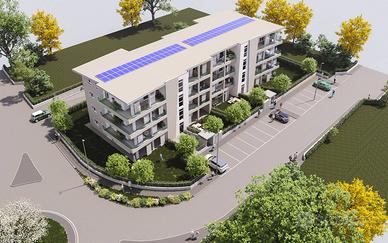 Bernareggio - In nuova elegante mini palazzina, disponiamo di 4 locali con doppi servizi e ampio terrazzo, dove è possibile usufruire di spazi all'aria aperta per godere di momenti di relax e convivialità. L'immobile ha una superficie di circa 110 mq ed è composto da un ampio soggiorno con cucina abitabile a vista, due camere da letto di cui una con cabina armadio e bagno privato. Completa la proprietà un secondo servizio.