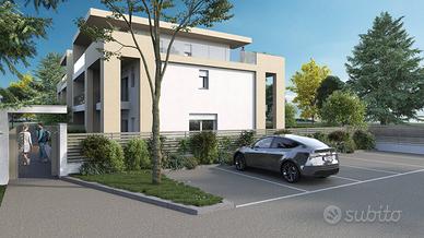 Bernareggio - In una delle zone più esclusive e riservate proponiamo in vendita un prezioso appartamento posto al piano primo servito da ascensore, i cui lavori inizieranno in primavera del 2026. L'immobile si sviluppa su un unico livello abitativo e grazie all'utilizzo di materiali di alta qualità e alla cura dei dettagli sarà certificato in classe A4. L'immobile che verrà completato nel 2027, si estende su una superficie totale di 86 mq. Gli spazi interni sono ampi e luminosi, grazie alla presenza di grandi aperture che garantiscono una perfetta illuminazione naturale durante tutto l'arco della giornata. L'immobile è dotato di un moderno sistema di riscaldamento autonomo a pompa di calore che garantisce un elevato livello di comfort e un notevole risparmio energetico. La soluzione è composta da 3 locali, tra cui 2 camere da letto, un bagno oltre a due terrazzi ampi e coperti, con parapetto in cristallo. Gli infissi con triplo vetro in PVC assicurano un'ottimo isolamento termico e acustico. L'esposizione sud-nord garantisce una perfetta esposizione solare durante tutto l'arco della giornata.