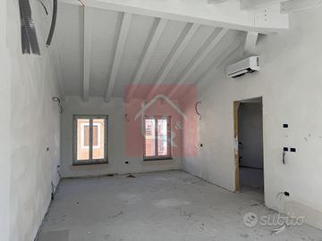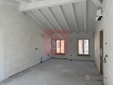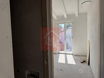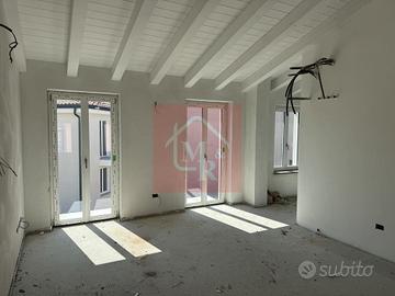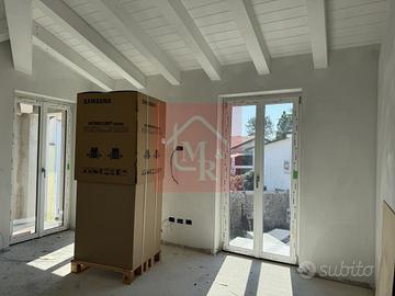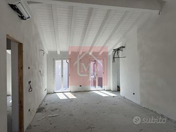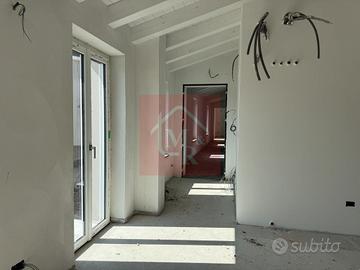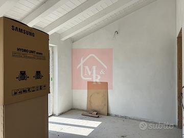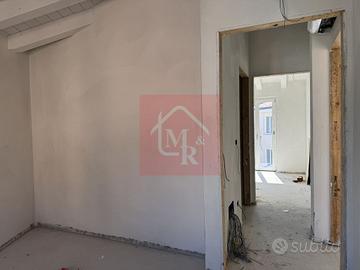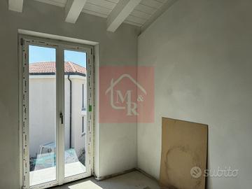 APPARTAMENTO BICAMERE, 89mq, di nuova costruzione sito al primo ed ultimo piano composto da: ingresso, soggiorno con cucina a vista con due piccole terrazze, disimpegno notte, camera singola, camera matrimoniale con tre terrazze di cui una coperta, e bagno cieco con doccia. L'unità immobiliare, in corso di ultimazione, ha il soffitto con le travi a vista di colore bianco, mentre il pavimento sarà in rovere e le porte interne di colore bianco, è presente il cappotto termico, il climatizzatore, la pompa di calore con accumulo ed il riscaldamento a pavimento.