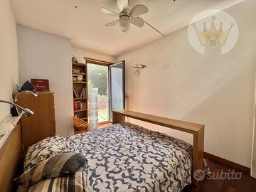 La zona notte, separata da un disimpegno, comprende una spaziosa camera matrimoniale e una camera singola.