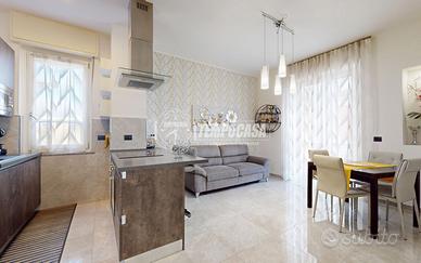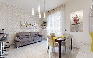 In Via Volturno, zona comodissima a tutti i servizi e alla prossima fermata della metropolitana, proponiamo in vendita uno splendido appartamento bilocale sito al secondo piano di una palazzina con ascensore, recentemente rivista esternamente e nelle parti comuni. La totale ristrutturazione dell'alloggio in tutte le sue componenti lo rende uno spazio pronto ad essere vissuto. Internamente l'immobile si sviluppa su tre aree ed è composto da: un ingresso living su ampio salotto con cucina a vista e accesso sul primo balcone, un disimpegno che conduce al bagno, anch'esso totalmente ristrutturato negli impianti e nei rivestimenti, e ad una zona notte con camera da letto e secondo balcone. Gli infissi esterni del bagno e del soggiorno sono in pvc e doppio vetro, invece la porta finestra della zona giorno e della camera da letto è in legno.