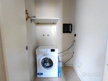 Lappartamento si trova al secondo piano di una piccola palazzina dotata di ascensore. All'ingresso ci accoglie una luminosissima zona giorno open space, dove soggiorno e cucina si fondono in un ambiente moderno, funzionale e accogliente. Da qui si accede ad una deliziosa loggia coperta, perfetta per colazioni, pranzi o cene allaperto durante la bella stagione.