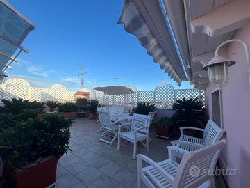 Splendido appartamento ad uso abitativo coomposto da 2 vani più cucinino, bagno, seconda camera da letto sul soppalco da cui si accede tramite una comoda scala in legno e piccolo studio, completa la proprietà uno splendido terrazzo attrezzato con una bellissima vista sul paese. L'appartamento di circa 79 mq. si trova in ottime condizioni di manutenzione ed è situato nel comune di Bitetto (BA) in pieno centro ed esattamente in Piazza Diaz all'interno di un palazzotto d'epoca del '900 ben tenuto. L'appartamento è luminoso e ben distribuito ed è composto da: ingresso con disimpegno, camera da letto con cabina armadio, studiolo, seconda camera da letto sul soppalco, soggiorno pranzo con balcone esterno e caminetto e cucinino. Dotato di ripostiglio soppalcato e bagno con box doccia. Il riscaldamento è autonomo con caldaia a condensazione, gli infissi sono in vetrocamera con oscuranti elettrici. Completa la proprietà un terrazzo sovrastante di 65 mq attrezzato con impianto di irrigazione, tende da sole, e un vano di 16 mq adibito a cucina e lavanderia. Per maggiori informazioni: -