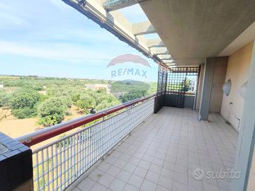 Labitazione è composta da unaccogliente zona living, tre camere da letto, due bagni (di cui uno nella camera matrimoniale), e splendidi balconi perimetrali e panoramici, perfetti per godersi luce e aria in ogni momento della giornata.