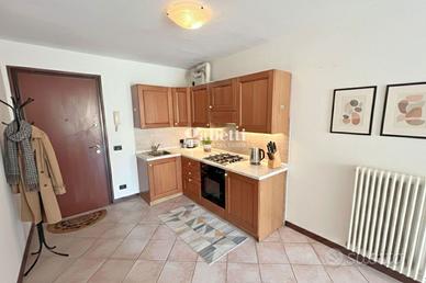 L'appartamento, posto al primo piano, si distingue per l'ottima esposizione e la luminosità degli ambienti. L'ingresso si apre su una zona giorno confortevole con cucina ad angolo cottura, perfettamente integrata al soggiorno, ideale per trascorrere momenti di relax o convivialità. Un corridoio conduce alla stanza matrimoniale, spaziosa e ben illuminata, e al bagno con cabina doccia. Dalla zona giorno si accede al balcone esposto a sud, dal quale si può godere di una splendida vista aperta sulle montagne e sul paesaggio circostante.
