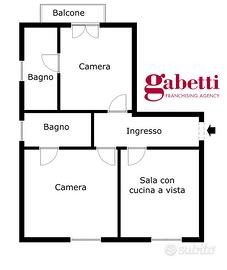 L'immobile si trova al terzo piano, di uno stabile senza ascensore, ed è composto da ingresso, sala con cucina a vista, due camere matrimoniali di cui una con accesso al balcone, due bagni in camera.