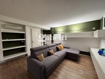 Al piano inferiore, grande taverna, lavanderia, cantina, garage doppio con accesso diretto all'appartamento, oltre a un posto auto esterno scoperto.