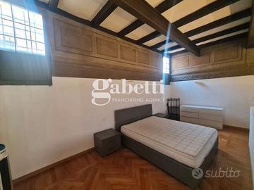 In palazzo storico totalmente ristrutturato da 10 anni circa e sottoposto al vincolo della Sovraintendenza dei Beni Culturali, appartamento posto al primo piano, servito da ascensore, con affacci interni, rappresentato da una ampia zona giorno con angolo cucina, un bagno, una scala che porta a un soppalco dove è posta la camera da letto.