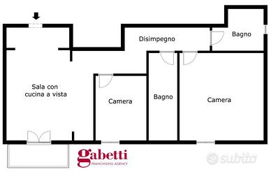 L'immobile è composto da ingresso su ampia sala con cucina a vista e accesso a un balcone, due camere da letto, due bagni.
