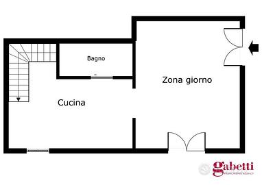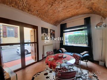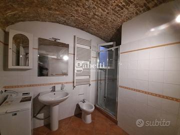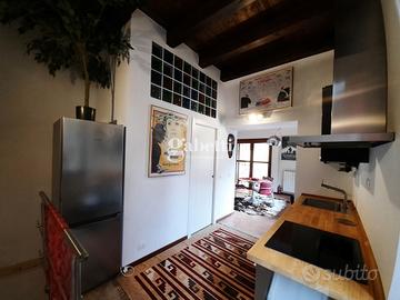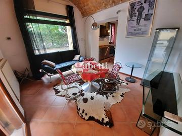Appartamento su due livelli, completamente ristrutturato e arredato, al piano terra, composto da open space con cucina a vista e bagno con aerazione forzata. Al piano seminterrato zona notte con zona studio e un bagno.