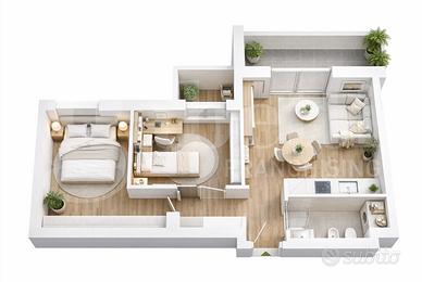 L'immobile si compone di una accogliente sala con angolo cottura, con accesso diretto alla loggia, ideale per momenti di relax. La zona notte offre una camera da letto matrimoniale e una camera singola, impreziosita da una balconcinata alla francese che garantisce luce naturale e un bagno cieco.