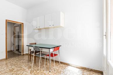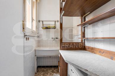 L'appartamento, da rivedere, si compone di un ingresso su ampio disimpegno che conduce al tinello con cucinotto.