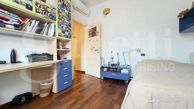 Proponiamo in vendita esclusiva proprietà di 160 mq situata al piano alto di un prestigioso condominio oggetto di una recente e completa ristrutturazione con efficientamento energetico, che include l'installazione di un cappotto esterno. Sono stati inoltre rifatti il tetto e i balconi. L'immobile, ben tenuto, gode di una grande luminosità per la sua tripla esposizione ed è particolarmente silenzioso presentando una distribuzione degli spazi estremamente funzionale ed é composto da: ingresso che conduce direttamente all'area giorno, salone luminoso e panoramico, cucina abitabile, quattro vani letto/studio attualmente distribuiti come - tre camere da letto e uno studio - due bagni, ampio ripostiglio di 17 mq e due balconi. La zona offre la comodità di avere l'asilo nido e le scuole elementari nelle immediate vicinanze rendendola una soluzione ideale anche per una famiglia numerosa. Completano la proprietà una cantina ed un posto auto coperto. APE: "D" - EURO 770.000 + p. auto coperto EURO 60.000