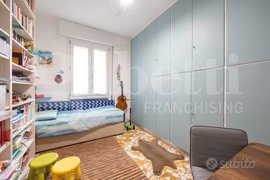 In posizione centrale e comoda a tutti i servizi e negozi della via Irnerio proponiamo un luminoso appartamento di circa 100 mq sito a un piano alto. L'immobile, ottimamente tenuto, gode di una doppia esposizione con affacci interni silenziosi. L'unità immobiliare si distingue per una razionale divisione tra zona giorno e notte ed é composta da: Ingresso diretto su un ampio e luminoso soggiorno con accesso al balcone e cucinotto a vista. Zona notte: tramite un disimpegno funzionale, si accede alle tre camere da letto, al bagno finestrato e a un comodo e ampio ripostiglio. Completa la proprietà una comoda cantina. La Geolocalizzazione dell'immobile potrebbe essere approssimativa. APE:F, Euro 395.000