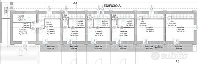 APP TRILOCALE A1: Sviluppato su due livelli, ingresso su soggiorno con angolo cottura al piano terra e due camere da letto, bagno e balcone al piano primo.