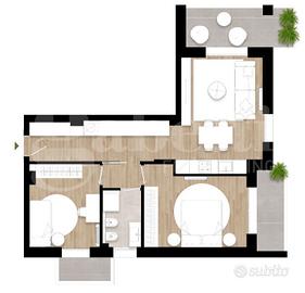 Vivi il futuro nel cuore di Navile Two Palace nasce dalla riqualificazione dell'ex sede ENEA in Via Martiri di Monte Sole. Un progetto moderno in classe energetica A4 che unisce spazi luminosi, verde e ottimi collegamenti con il centro città. Consegna Dicembre 2026. Un progetto che valorizza il quartiere Two Palace è un esempio concreto di rigenerazione urbana che restituisce valore e nuova vita a un edificio storico di Navile, quartiere in pieno sviluppo. Un complesso pensato per offrire abitazioni moderne ed efficienti di diverse metrature, con posti auto, cantine, spazi comuni curati e un parco verde. Il contesto è tranquillo e residenziale, ma perfettamente collegato al centro città e a solo un paio di km dalla Stazione Centrale, dall'aeroporto e dalla tangenziale. L'appartamento B8 Situato al secondo piano, questo trilocale di 84 mq si distingue per l'ampio terrazzo e l'esposizione Sud-Est, che garantisce luce naturale durante tutto il giorno. L'ingresso si apre su un lungo corridoio che conduce al salotto con cucina open space e affaccio diretto sul terrazzo principale. Una soluzione ideale per chi desidera ambienti interni luminosi e spazi esterni per momenti di relax. L'anticamera separa la zona giorno dalla zona notte, composta da camera padronale e seconda camera, entrambe con accesso a un secondo terrazzo, oltre a un bagno.