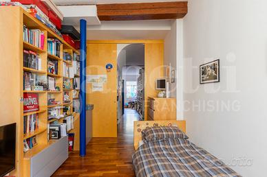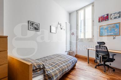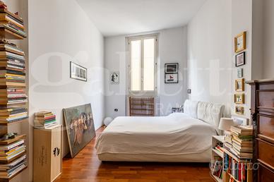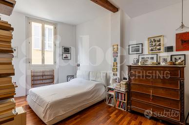 Bologna, Centro Storico, Via Dei Bibiena, in piccola palazzina con corte interna, al primo piano, silenzioso appartamento di 95 mq circa, in buon stato, composto da: ingresso finestrato ed arredabile, soggiorno con angolo cottura a vista, due camere matrimoniali di cui una con cabina armadio, due bagni e cantina. Finiture di Pregio. Riscaldamento autonomo. Classe Energetica F, IPE = 122,94. Euro 460.000,00. RIF. Q23/RD