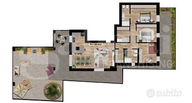 Proponiamo in vendita appartamenti di nuova realizzazione all'interno del progetto "Toscana 136", un intervento di riqualificazione urbana che prevede il recupero dell'area delle ex scuole "Severino Ferrari". La posizione è strategica: a pochi minuti dal centro città, in prossimità dei colli, comoda alla rete autostradale e servita da trasporti pubblici, scuole, centri commerciali e ogni tipo di servizio. Classe energetica prevista: A. Il complesso sarà composto da 50 unità abitative, con diverse tipologie e metrature, e avrà accesso diretto da Via Toscana. Appartamento in vendita: Trilocale al terzo piano della palazzina "B", con una superficie commerciale di 89,08 mq. L'immobile è composto da ingresso su soggiorno con angolo cottura, due camere da letto (una matrimoniale e una singola), e due bagni finestrati con piatto doccia, di cui uno en suite alla camera matrimoniale. Tutti gli ambienti godono di accesso diretto, tramite porte-finestre, alla splendida terrazza abitabile di 25,90 mq, ideale per momenti di relax all'aperto.