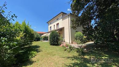 A due passi dal centro del paese proponiamo ampio appartamento di oltre 130 mq inserito in una villa bifamiliare con quasi 1000 mq di giardino e area esterna in comune..