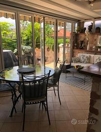 In posizione strategica, a pochi passi dall'uscita dell'autostrada, proponiamo in vendita un prestigioso appartamento all'interno del Complesso Residenziale "Le Mimose". Questa realtà immobiliare offre una Superficie di 100 MQ., inclusa la zona esterna, e si sviluppa su due livelli, garantendo ampi spazi e comfort per la vita quotidiana. Un accesso secondario con vialetto privato porta direttamente alla zona living esterna sul terrazzo, completa di una caratteristica area bar, che si collega sinergicamente all'interno dell'alloggio. Mentre l'ingresso principale conduce alla zona giorno dove troviamo un ampio soggiorno, una cucina separata ben attrezzata e un bagno di servizio. Un elegante scala interna conduce al piano superiore, dove si collocano una camera matrimoniale, una seconda cameretta con accesso diretto al balcone e un secondo bagno, progettato per garantire massimo comfort e privacy. Il terrazzo è ideale per momenti di relax e convivialità. L'immobile è dotato di un posto auto condominiale e l'accesso alla piscina condominiale, elementi che arricchiscono ulteriormente questa proposta abitativa. Grazie all'esposizione Sud/Ovest, l'appartamento gode di una luminosità eccezionale che riempie gli ambienti di luce fino all'imbrunire, creando un'atmosfera accogliente e rilassante. Le spese condominiali ammontano a euro 750, comprensive della quota-uso della piscina, assicurando una gestione efficiente e ordinata delle aree comuni. Le rifiniture dell'immobile sono di alta qualità: gli infissi sono dotati di vetri camera e le tapparelle sono tutte motorizzate. L'immobile è climatizzato grazie a impianti inverter, con quattro split distribuiti in tutti gli ambienti, mentre il pavimento in parquet e gli arredi conferiscono un tocco di eleganza. L'intera proprietà è termo -autonoma grazie a una caldaia esterna permettendo di gestire in libertà orari, accensione e temperatura. Evidenziamo la possibilità di acquistare un garage a parte