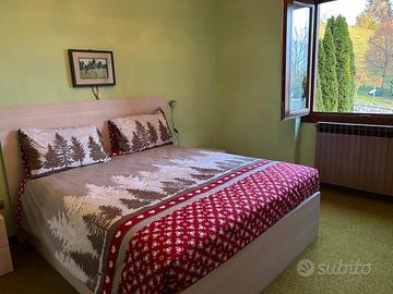 Affitto appartamento in villetta indipendente, con ampio giardino e posto auto interno alla proprietà. L'appartamento è arredato in stile alpino, con cucinino dotato di lavastoviglie, salotto/sala da pranzo, due camere matrimoniali ed un bagno con doccia.