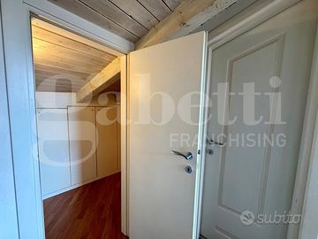 Un'elegante scala accompagna al piano superiore dove il soppalco, affacciato sulla zona living, introduce alla zona notte composta di tre camere da letto, di cui una padronale con cabina armadio e bagno con vasca idromassaggio, e da un ulteriore servizio che serve le restanti due camere. Le stanze sono caratterizzate da spettacolari vetrate che incorniciano viste mozzafiato sul Duomo, il Castello e i tetti dei palazzi storici.