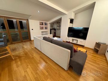 Confortevole e super accessoriata suite di circa 55 mq, con una comoda stanza con letto matrimoniale e TV, ampio bagno con lavatrice, cucina completa, ampia zona giorno che comprende sala da pranzo, salotto con divano letto e Smart TV, luminoso, silenzioso, con terrazzo, dotato di Internet fibra, macchina caffè, bollitore, microonde, riscaldamento a pavimento, parquet, doccia, posizione strategica e ben servita nelle vicinanze.