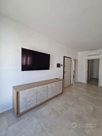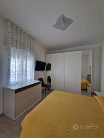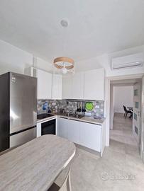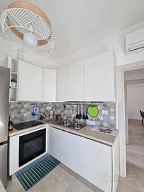L'appartamento è posto al secondo piano servito da montacarichi in piccolo e tranquillo condominio e presenta un ingresso su un luminoso salone con divano letto, zona pranzo e accesso al terrazzo a livello, cucina abitabile completamente attrezzata con piano a induzione, lavastoviglie, forno e friggitrice ad aria, oltre a balcone di servizio.