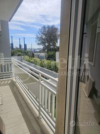 CASALE-MATERDOMINI: a ridosso del meraviglioso Porticciolo Turistico, si propone appartamento di mq 80 posto al 1°piano di una delle palazzine di un complesso condominiale di nuova costruzione costituito da sole 19 unità abitative. L'abitazione si compone di zona living e angolo cottura con affaccio su balcone, due camere da letto, di cui una con piccolo balcone, ripostiglio e due bagni. La proprietà comprende un box auto. Pavimenti in gres porcellanato, infissi esterni in PVC di colore bianco con tapparelle elettriche. Impianto di riscaldamento con caldaia autonoma a gas a condensazione. Radiatori in alluminio, con termo-arredo in bagno; linea telefonica con fibra e impianto di allarme antintrusione e videocitofono. Acquisto con iva al 4% se prima casa, al 10% negli altri casi. Trattasi dell'ultimo trivani disponibile nella palazzina C. Data la posizione strategica tra la base ONU ed il porticciolo turistico, l'acquisto costituisce anche un ottimo investimento.