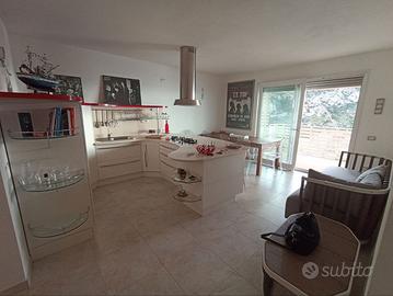 La casa è composta da un ingresso soggiorno con zona cottura, due camere da letto, entrambe con terrazza vista mare, bagno ripostiglio cantina e posto auto.