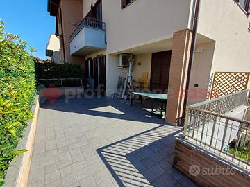Appartamento in Vendita - Un Angolo di tranquillità in Zona Residenziale** Scopri questo splendido trilocale situato al piano terra, immerso in un contesto condominiale di pregio. L'appartamento, consegnato nel 2021, offre un accesso diretto dal cortile condominiale curato e piantumato, creando un'atmosfera di tranquillità e privacy. Con un ampio giardino di proprietà di circa 160 mq, questo immobile è perfetto per chi ama trascorrere del tempo all'aperto. L'interno è composto da un luminoso living con angolo cottura, che si affaccia su un terrazzo con porticato, ideale per cene estive o momenti di relax. La camera matrimoniale dispone di un elegante balcone alla francese, mentre la camera singola ha una portafinestra che conduce direttamente al terrazzo. Il bagno è funzionale e ben distribuito. La proprietà include anche un box doppio finestrato in lunghezza con serranda appena sostituita e di nuova generazione, perfetto per chi ha bisogno di spazio extra. Ogni dettaglio è stato pensato per garantire il massimo comfort: l'impianto di riscaldamento è centralizzato con contabilizzatore di consumo, radianti a pavimento, gli infissi doppio vetro pvc con oscuranti a a gelosia, impianto di deumidificazione. impianto di irrigazione nel giardino, Possibilità di trasformare l'appartamento in un ampio bilocale. Presenti gli attacchi per i servizi cucina anche nella cameretta. Inoltre, l'immobile è accessibile a persone con mobilità ridotta e presenta impianti moderni come videocitofono e sistema antintrusione. Approfitta della possibilità di accedere a MUTUO GREEN e scontare l'acquisto in imposta registro. Classe energetica A1, con consumi contenuti. Contattaci per maggiori informazioni e per organizzare una visita!