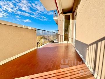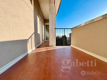 L'appartamento, grazie alla doppia esposizione est/ovest, risulta molto luminoso oltre che panoramico, offrendo ambienti ariosi e piacevoli durante tutta la giornata, ed è composto da ingresso accogliente, ampio soggiorno servito da balcone e terrazzino coperto, perfetti per momenti di relax all'aperto, cucina abitabile con accesso a un secondo terrazzino, disimpegno arredabile, ideale per armadiature su misura, locale servizio/lavanderia finestrato, bagno principale, due camere da letto, di cui una matrimoniale.