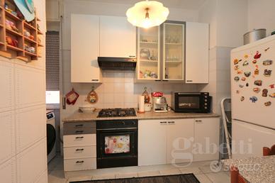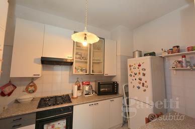La metratura di 85mq, comprende ingresso sul pratico disimpegno, soggiorno, cucinotto separato, due camere da letto e bagno con vasca.