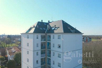 Ultimo piano panoramico su 2 livelli (6° + 7°): privacy, vista e tanta luce. Doppi servizi (entrambi completi) + spazi accessori (ripostigli). Terrazzi al piano superiore: outdoor vivibile, perfetto per relax o smart working "all'aria aperta". Contesto moderno e tranquillo, lontano dal traffico ma vicino ai servizi. Pronta da vivere: inclusi arredo cucina, lavatrice e asciugatrice + cantina Opzioni garage/posti auto: box singolo e 2 posti auto acquistabili a parte Vivere in alto, con luce, spazio e tranquillità (a due passi da Malpensa) A Busto A., in posizione comoda per chi si sposta tra Gallarate, l'imbocco della S.S. Malpensa e i servizi quotidiani, proponiamo prestigioso appartamento di ampia metratura su due livelli, all'ultimo piano di una palazzina moderna ed efficiente, in classe A1. Appena entri, la sensazione è chiara: ambienti ariosi, luce naturale e una distribuzione intelligente. Al sesto piano ti accoglie una grande zona giorno open space, perfetta per cene con amici o momenti di relax. Completano il livello due camere spaziose e un bagno finestrato con box doccia. La scala interna porta al settimo piano, il vero "jolly": un ampio spazio sottotetto (con ingresso indipendente), ideale come studio, area hobby, zona relax o suite ospiti. Qui trovi anche un secondo bagno, ripostiglio e soprattutto due terrazzi che regalano luce tutto il giorno e rendono questo piano un'estensione naturale della casa. In più, un ulteriore ripostiglio con scala a scomparsa offre spazio extra utile nella vita quotidiana. Lo stabile (fine anni '90) è stato recentemente riqualificato con interventi di efficientamento energetico, garantendo maggiore comfort e attenzione ai consumi. La casa viene venduta completa di cantina e con arredo cucina, lavatrice, asciugatrice e un set nuovo per l'impianto di climatizzazione: un vantaggio per chi vuole entrare senza pensieri. Possibilità di acquisto nello stesso condominio: Box singolo € 18.000 - 2 post