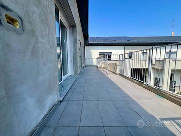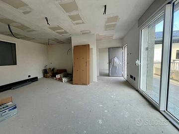 L'appartamento è composto da ingresso da terrazzo di 20 mq, ampio soggiorno con cucina a vista, disimpegno, camera matrimoniale con bagno, cameretta, ed un ulteriore bagno. La soluzione è collegata al sottotetto di altri 80 mq da rifinire con pavimentazione.
