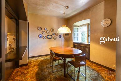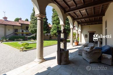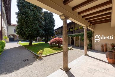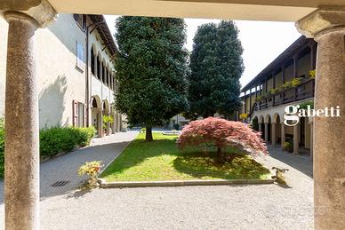 Calco alta - Villa Moriggia in dimora storica del '600 disponiamo di prestigioso attico con ingresso indipendente al primo ed ultimo piano. La vista panoramica sul borgo nobile denominato la magnolia e l'esposizione sud-ovest rendono unica questa soluzione immobiliare. La dimora è circondata da un parco di 50.000 mq dove è stata ricavata una piscina con solarium ed è avvolta da un'atmosfera dove la privacy, la tranquillità e il silenzio dominano in assoluto. L'immobile è composto da un grande e luminoso salone con camino, una spaziosa cucina abitabile, tre camere di cui una suite con cabina armadio e bagno privato oltre a due ulteriori servizi. I soffitti a cassettoni e la particolare disposizione interna caratterizzano questa proposta immobiliare. 450.000,00 compresi gli arredi e due posti auto coperti di proprietà.