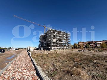 Esempio unità 3 - Piano Quarto - SLV 104 mq - Ingresso su ampio living con parete vetrata da cui si accede alla loggia di 10 mq, bagno/lavanderia, disimpegno notte, camera matrimoniale con bagno privato e balcone, studio/camera e camera doppia con ulteriore balcone. La stessa tipologia è disponibile anche al piano primo, secondo e terzo. Euro 350.000 oltre IVA. Volendo disponibilità di garage e posti auto. Consegna 2027.