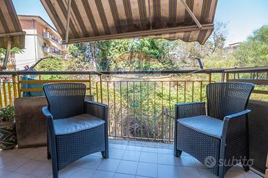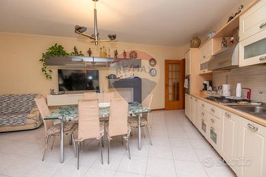 L'ingresso si apre su un ampio e luminoso soggiorno- cucina, arricchito da grandi finestre e da un terrazzino che regala una piacevole vista sul verde circostante.
