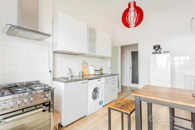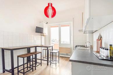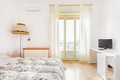 Appartamento composto da due camere grandi (con letto matrimoniale, aria condizionata caldo e freddo, TV e balcone), internet WI FI, cucina-soggiorno, corridoio e bagno. Mq 80 circa. Possibilità di affittare anche stanza singola.