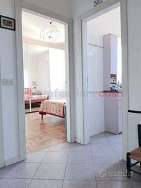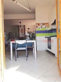 L'interno, in ottime condizioni, dispone di un ampio soggiorno doppio, cucina a vista, due camere da letto, ripostiglio e un bagno finestrato. Gli spazi sono luminosi e ben distribuiti, con una tripla esposizione che garantisce una piacevole luminosità in ogni ambiente. Inoltre, l'appartamento è dotato di un terrazzo angolare, in parte verandato, per godere di momenti di relax all'aperto. Pavimenti in cotto in sala e in parquet di olivo nelle camere. Classe energetica "F"